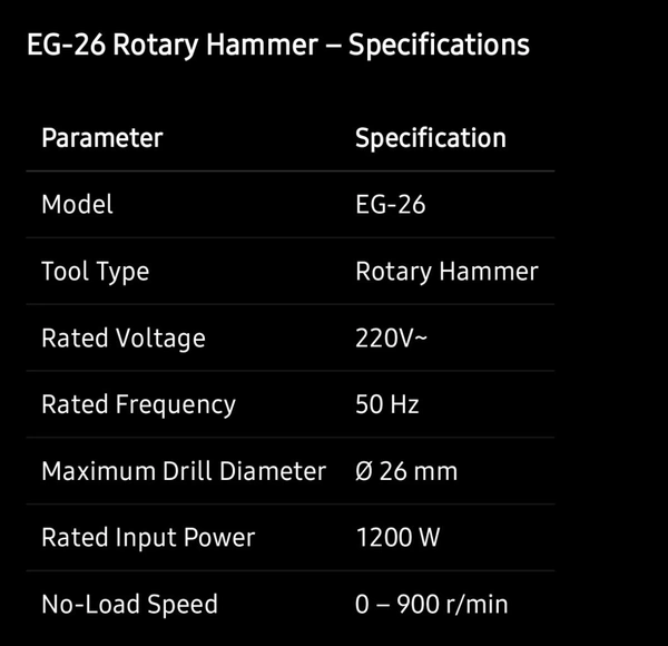 • 26mm drilling capacity for concrete, masonry & brick
